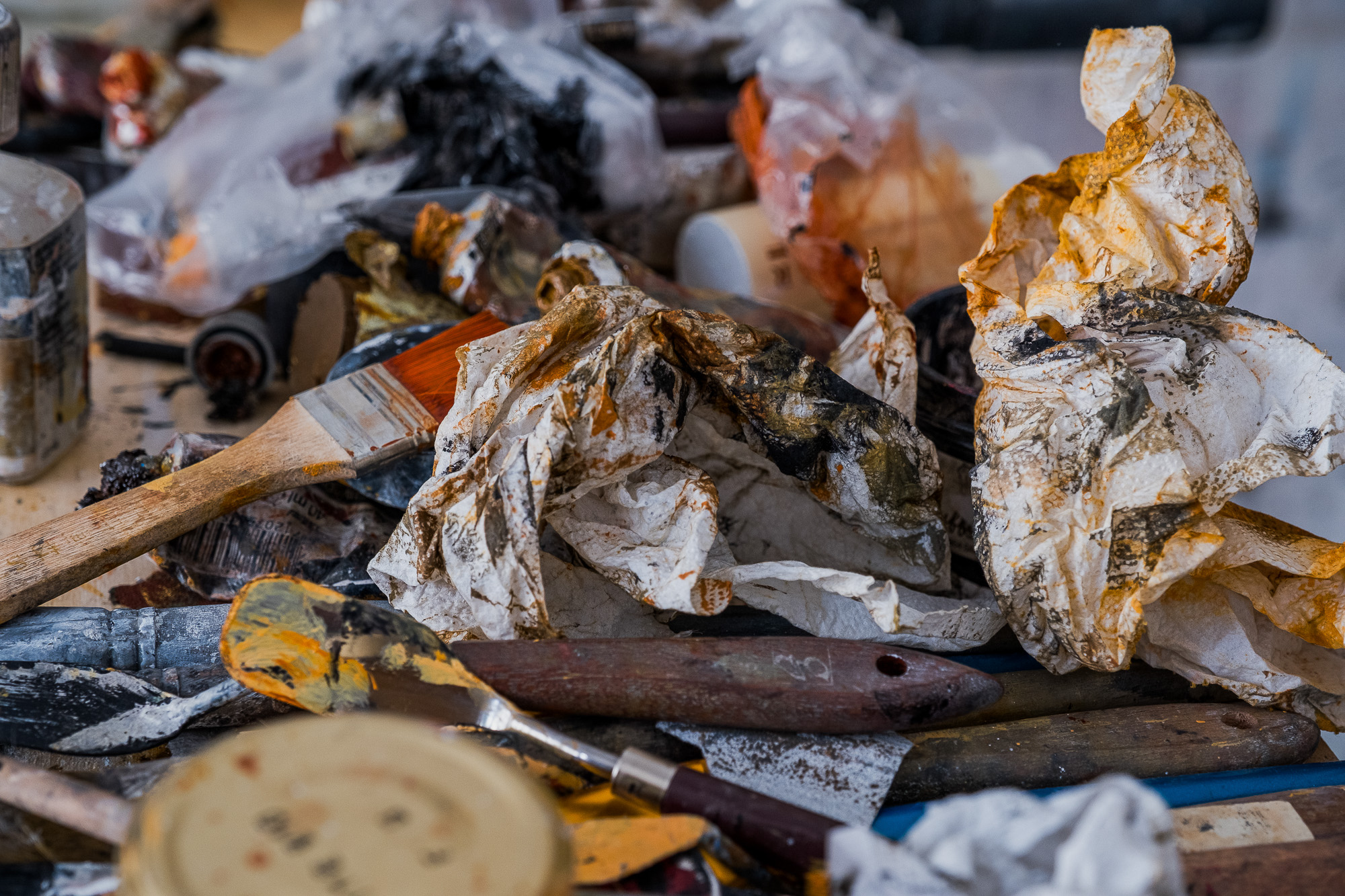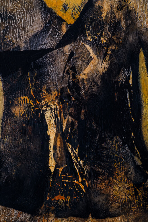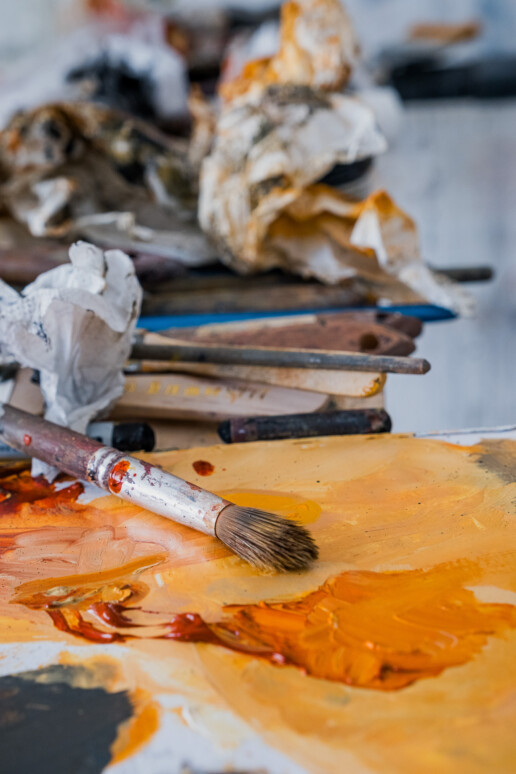 Réalisation de quelques photos de son travail en cours, mettant en valeur les textures, les couleurs et l’énergie de ses œuvres.